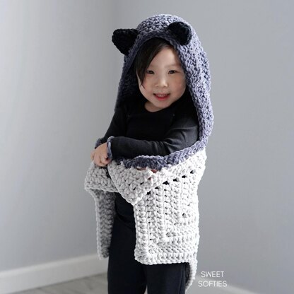 The Bat Cape is a hooded capelet that requires minimal sewing. It is quick to work up using super bulky yarn, like Hobbii Honey Bunny yarn, and a large crochet hook. The size can easily be adjusted to fit toddlers, children, and adults, making it a great Halloween costume, pretend play outfit, or cosplay! The wings can be made longer or shorter following the pattern instructions. The hood is one size fits most, and instruction is included for crocheting a smaller hood and extra large hood. Since the pattern offers tips for sizing, you can also crochet this pattern to fit a baby or adult.