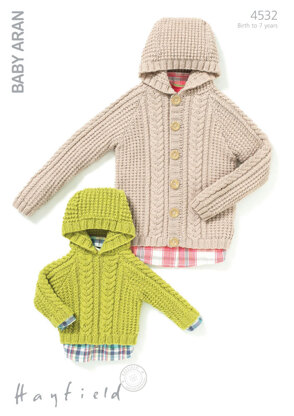 Hooded Jacket and Sweater in Hayfield Baby Aran - 4532 - Downloadable PDF