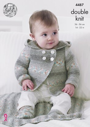 Hooded Jacket, Blanket & Bootees in King Cole Drifter For Baby DK - 4487 - Downloadable PDF is a Intermediate Knitting pattern by King Cole, available as a Downloadable PDF and includes instructions in English. Super fun to make, this pattern could be your next masterpiece!