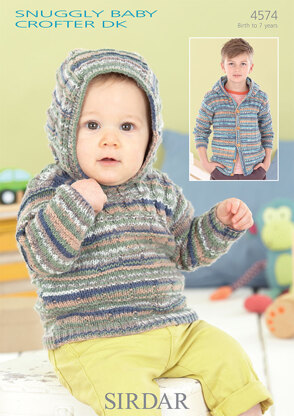 Hooded Sweater & Jacket in Sirdar Snuggly Baby Crofter DK - 4574 - Downloadable PDF is a Knitting pattern by Sirdar, available as a Downloadable PDF and includes instructions in English. Super fun to make, this pattern could be your next masterpiece!