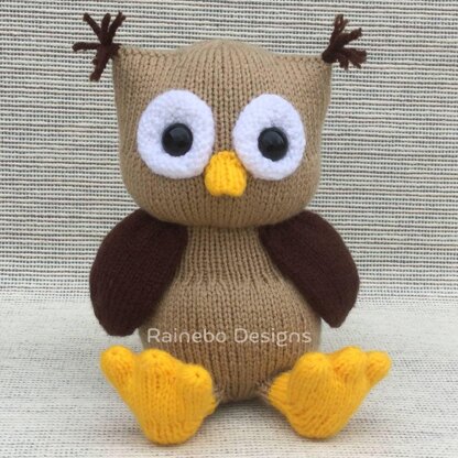 This free-sitting Hooty Owl is knit in the round, (Intermediate Level), using Magic Loop or double pointed needles. The legs, tail, body, wings and head are all knit on as you work along. It is approx. 9” tall (sitting), and is created using #4-Worsted Wt. (Aran/10-ply) yarn. Main Color: 110 yds. (Red Heart With Love-Tan) Contrast Color A: 50 yds. (Red Heart With Love-Chocolate) Contrast Color B: 30 yds. (Bernat Super Value-Bright Yellow) Contrast Color C: 15 yds. (Lion Brand Vanna’s Choice-White) • Size 4 (3.5mm) 32” Circular Knitting Needles (if using Magic Loop) or Double Pointed Needles • 18mm Safety Eyes (or embroidery thread/yarn) • Ring Stitch Markers & Removable Stitch Markers • Large-Eyed Blunt Needle & Long Straight Pins • Polyester Fiberfill Stuffing