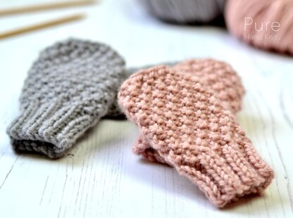 These gorgeous textured baby mitts are super quick and easy to knit... the perfect project for new knitters! If you can work a simple knit stitch and a simple purl stitch and a k2tog you will be able to knit these easy-knit baby mittens.