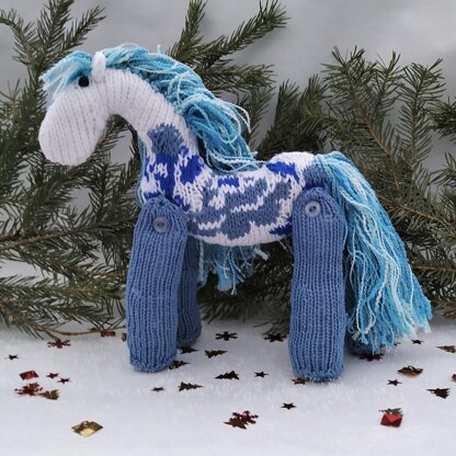 This horse stuffed animal is decorated with the image of blue rose. The legs of the toy are movable.