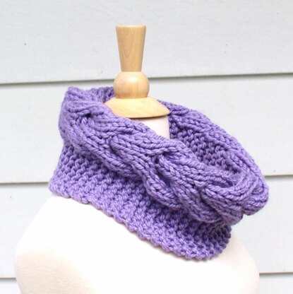 This cowl is made using a provisional cast on and a grafting bind off. When grafted together, the cable matches up and it appears seamless. This cowl is knit in a chunky yarn with big needles and knits up fast! In the PDF, you receive a pattern for both the cowl and the long scarf.