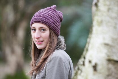 Horwood is a casual unixex hat with a decorative cable and moss stitch striped pattern.