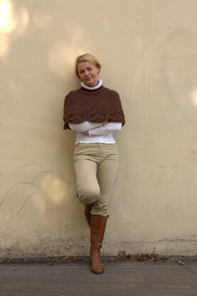 The delicate lace pattern at the bottom of this top looks likes the leaves of the cocoa plant, and when knitted in chocolate brown with a white finish , it makes me think of hot chocolate.