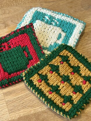 The pattern was originally written as a small, quick project for a workshop in double knitting. It includes a one-page tutorial to guide first-timers through making these coasters.