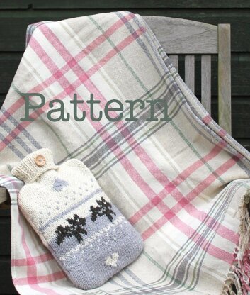 Only two colours are used on each row, so you only hold two strands of yarn & a great project for practicing intarsia & stranded colourwork. Designed to fit a standard 2 litre hot water bottle (main body 27cm x 21cm 10½" x 8"). Knitted flat in two parts that are sewn together.