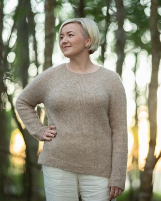 This pullover was inspired by the fluffy yarn from Rauma Garn. The lightness of the yarn inspired to make as light sweater with a relatively loose gauge. The sweater has circular yoke and straight shape. See also Höttö Cardigan.