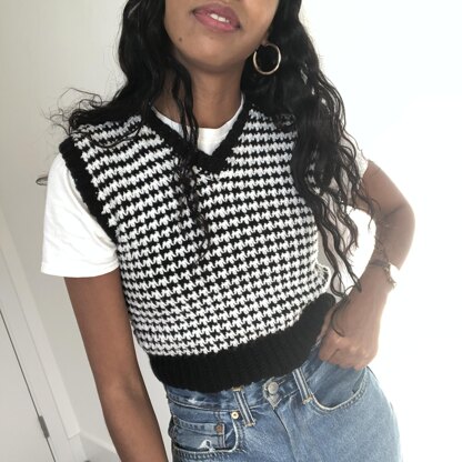 SKILL LEVEL: Advanced beginner (US terminology) This top is made in two separate panels which are easily joined together. The main houndtooth stich is made of single and double crochets.