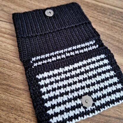 The Houndstooth Wallet is a classy and cute design that works for any occasion! Mix and match colors to fit your style! A small project that is perfect for stash busting those leftover little balls of yarn (the accent color only needs 35 meters!)