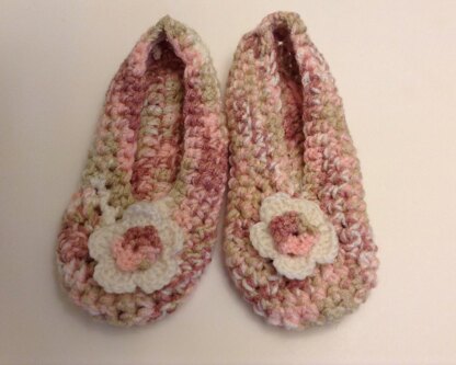What a great comfy pair of slippers to stroll around the house in. These slippers are very soft and cushiony, crocheted with 2 strands of worsted medium weight yarn to add that extra softness.