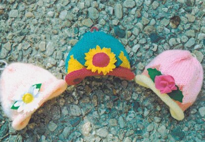 A great, simple set of hats that look way more advanced than they are! Pattern includes shapes used to cut flowers out of felt to hand sew together, or buy a ready made flower if you like.