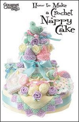Create a beautiful baby gift that doubles as the centerpiece for a baby shower. Soft and cuddly crocheted toys, bib, booties, edgings, bottle covers and more are combined with purchased cloth and disposable diapers (called “nappies” in Europe) to create a gorgeous tiered cake that will be the highlight of a shower.
