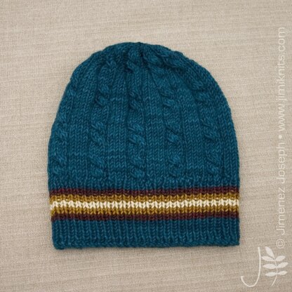“Howzat!” In Cricket, this term (derived from "How's that?") is an appeal made by the fielding team which asks the Umpire for a decision as to whether or not a batsman is out. Following the cricket theme, this hat is made from the bottom up using a circular needle and features nifty cable rib patterning and funky stripes!