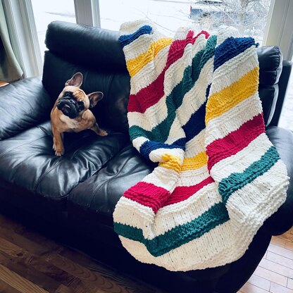 This pattern was inspired by the smaller version of this blanket, the Hudson’s Bay Inspired Baby Blanket. It uses two different knitting techniques: Garter Stitch and Stockinette stitch. I wanted to give this blanket a little more texture than its baby blanket counterpart and I was so happy with the result.