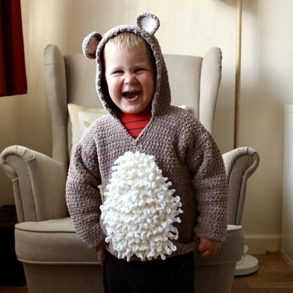This super snugly jumper makes a perfect top for the winter. It is a fun make for your little ones using basic stitches so it is a great pattern to start with.
