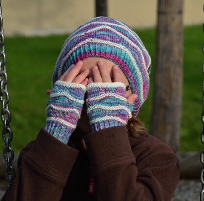 Perfectly fitting mittens, they keep the wrist warm. They match to the Hug of the ocean cowl and hat, for children and adult