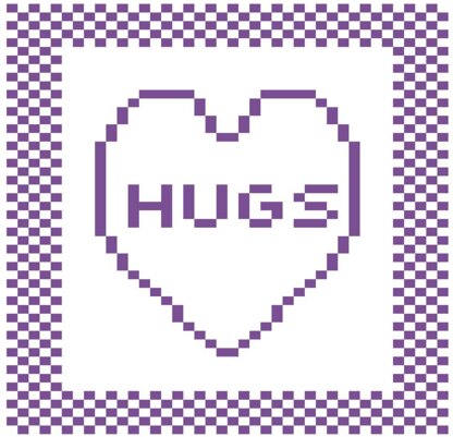Hand-designed 'hugs' heart dishcloth pattern. All of my patterns are free-drawn and converted to a pattern on knitting graph paper. I never use knitting pattern creation software to design my patterns. One skein of sugar n cream yarn on size 4 (US) needles is used to create each dishcloth.