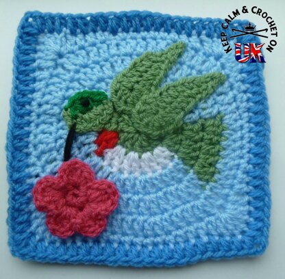 An eye-catching hummingbird designed afghan square that can also be adapted as a dove. A great square for nature lovers or as a symbol of peace; let it brighten your life with bright jewel tones or bring harmony to your space using soft pastels.