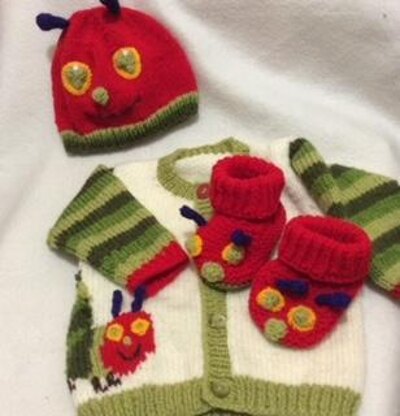 Options are given for 2 different intarsia caterpillars & 2 appliqué caterpillars.
