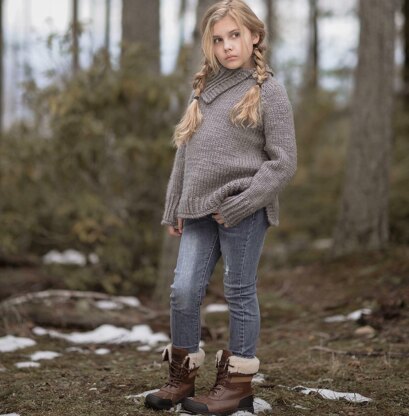 The Huxley sweater is designed with a positive ease of approx. 6-10 inches. Pictured in size 10/12 with a positive ease of 9 inches.