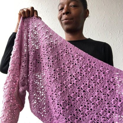 Hyacinth is a beginner crochet scarf/wrap pattern featuring a staggered repeat that gives it a vintage feel.