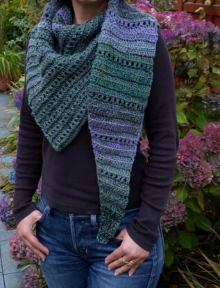 Inspired by fading hydrangea flowers, this chunky shawl is worked sideways, combining two yarns, one variegated and the other one solid to create a blurred ombre look. Suitable for any weight yarn and colour combinations from your stash, the possibilities are endless.