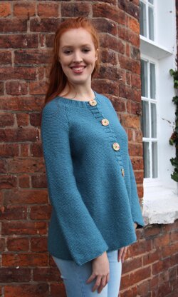 It comes from Marianne’s series of easy to knit patterns for the beginner up, and is inspired by her catwalk designs. It is knitted in the Raglan style and is adorned with 5 one inch funky buttons to jazz it up. You can choose how your buttons will make your cardy feel – jazz it up for fun, or make it plain. Either way, it’s a comfy cardy.