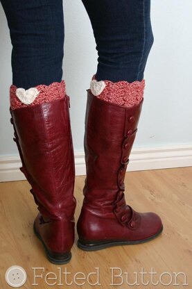 I love boot cuffs! So why not have hearts on them, too! This simple pattern includes instructions for the boot cuffs and how to make them in any size you wish. It also includes instructions for making the itty bitty hearts and putting it all together. Simple, quick and a perfect gift. (I made a pair on the way out the door this morning!)