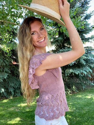 The ‘I Do’ Frilly Top is inspired by Wedding Season. It is feminine, luxurious, sweet and sexy! The form-fitting bust flares into a traveling vine lace peplum. The fluttery lace sleeves add flirt and frill, and this top looks amazing on all body types! This is the must-have knit for all the ‘I Do’ events of the summer.