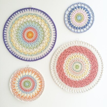 This is a super detailed 28 page pattern which includes step by step photo tutorial along with colour recipes to make 3 different sized mandala wall hanging.