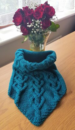 Knitting pattern for I Heart Cables Bandana scarf cowl, make it for yourself or for a loved one, gift for Mother's Day, birthday or Christmas gift, hand knit cowl for women or teenagers.