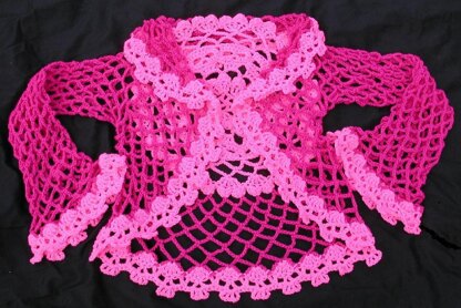 Short Version of the I Love skulls vest , or add sleeves to make a cardigan. Flirty, flouncy , quick 2 skein project. Size is determined by hook size. Small hook 4.50 Medium I 5 50 L K 6.50