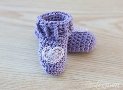 I love you socks are socks, which can double of as a bootie suitable for little ones from 0-6 months. They can be either worn as socks or folded over to give them more of a bootie apparance. The ribbed hem helps them to stay on little ones feet, even when they're really wiggly :)