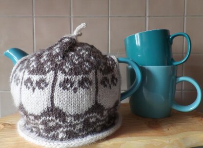 Twit twoo! Twit toasty! Keep your tea warm with this cute owl cosy. Available in a range of sizes and with a number of custom sizing options, this tea cosy will be an adorable addition to any tea pot. The tea cosy is knitted in the round and then steeked.