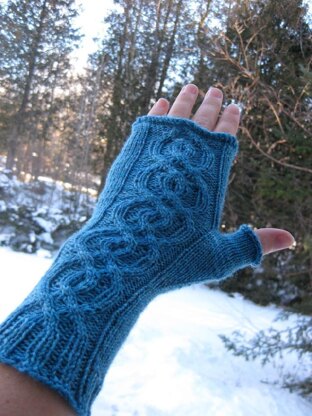 All the fingerless mittens/gloves are knit with fingering weight yarn. Unless otherwise specified, semi-solid and solid colours will yield the best result. Highly variegated yarns tend to obscure the pattern.