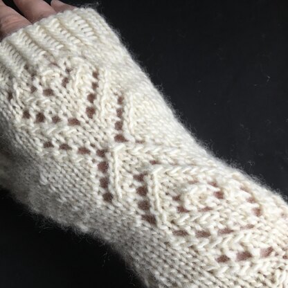 Keep your hands cosy, yet elegant, with long lacy mitts that knit up quickly in the round. This pattern is in three sizes, with charted and fully written options.