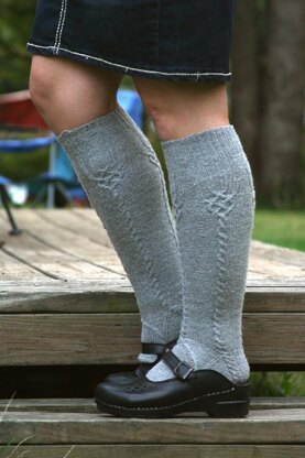 I set out to design a knee sock that would be simple yet ornate, that would accommodate my large calves and still stay up, and that I could wear with most of my wardrobe.