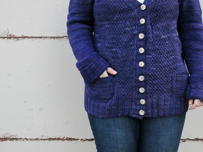 I love a cozy grandpa sweater, and Ifan is exactly that. Intended to be worn with 2-6in/5-15cm of positive ease, Ifan has extra long sleeves and cozy patch pockets. The textured moss stitch body gives way to deep ribbing and tailored stockinette set-in sleeves.