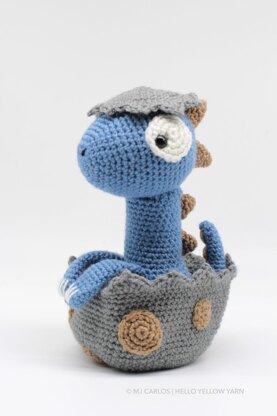 This listing is an original pattern written in English using US Crochet Terminology to crochet your own amigurumi dinosaur. Make the adorable Iggy. The big Dinos scare him, so baby Iggy still likes to hide in his little eggshell.