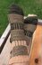These socks are a play on contrast using garter stitch, stockinette stitch and slipped stitches to blend and mix two colours.