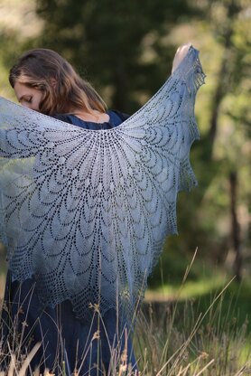 The design uses an evolving wedge shape which grows intuitively as you progress through the rows towards the ethereal edging. Light beading serves as row counters, so you can always find your place.