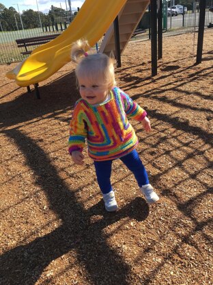 It is designed as a loose-fitting sweater for little ones, perfect over some leggings for a trip to the park.