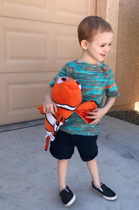 Oink! Pigments has the best colorway names, don’t they? My little guy is quite the fan of a pair of adorable fish (you just might be familiar with them after now that they have been FOUND!) This color was perfect to include in my kid’s top line- and it really came into it’s own, this version is a simple side-buttoned, raglan style tee, featuring a pretty fun texture pattern that reminds me of Goldfish! You could easily make the sleeves longer to turn this tee into a sweater, just make sure that you keep knitting, just keep knitting!