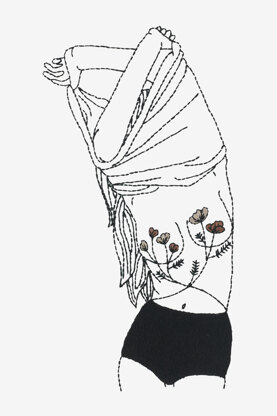 Designer Jess Wariorka encapsulates both strength and femininity with this design, which features a woman revealing her torso wrapped in beautiful delicate flowers. Stitch this lovely pattern on any hooped wall hanging or plain tote bag.