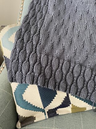 A combination of knit and purl stitches, with a little twist and carefully worked increases and decreases, make up the textured effect and deep border of this blanket, which is worked all in one.