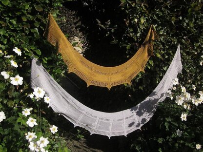 The shawl is worked bottom-up and is available in three sizes: Small in fingering weight, Large in heavy laceweight, X-Large in lace weight. Each requiring a single 100g skein...