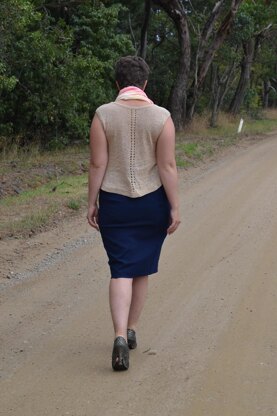 This relaxed swing tank is knit top down, in the round with seamless construction. It is well fitted in the shoulders and back and has regular increases down the centre front and back as well as the sides to create a loose swing hem with lovely shape and movement. A simple but effective eyelet lace adds interest to the front and back. Perfect for hot summer days this tee is perfect for everyday wear, paired casually with high waisted jeans or dress it up with a smart pencil skirt. Knit out of lovely soft and drapey cotton, silk or linen this tee is easily washed and a pleasure to wear.