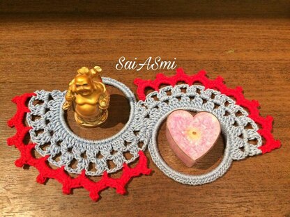 Incurvated is inspired by the S-Shaped border patterns of a South Indian Rangoli/Kolam.  It’s worked as individual motifs, worked around a ring to be joined. This attractive design can highlight your tealights, small artifacts or just as a highlight for any flat surface/wall!